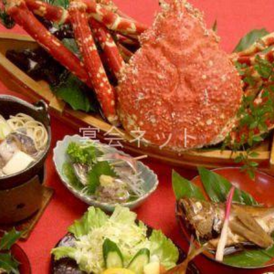 また、お食事には、自慢の「金谷のあじ」を用い、たたき、なめろう、つみれ汁、さんが焼き、コロッケなどといったオリジナル料理を提供しています。その他、季節に応じて、高足ガニや赤座海老と言った旬もご用意しており、絶品料理をご堪能いただけます。